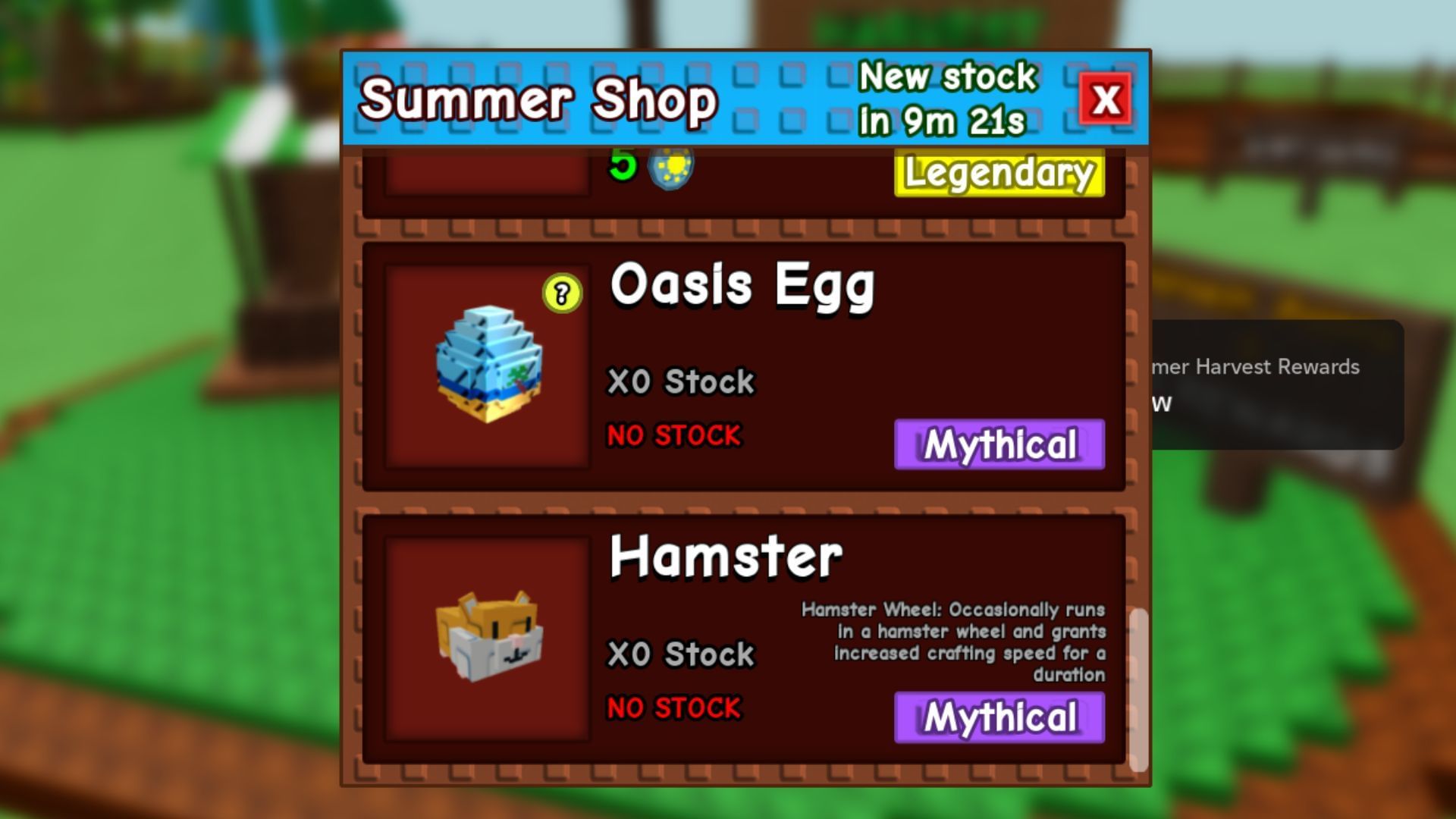 The Oasis Egg is a Mythical item, so it has an incredibly low chance of appearing in the Summer Shop stock. The shop restocks every 30 minutes, so make sure to check it as soon as new items appear.