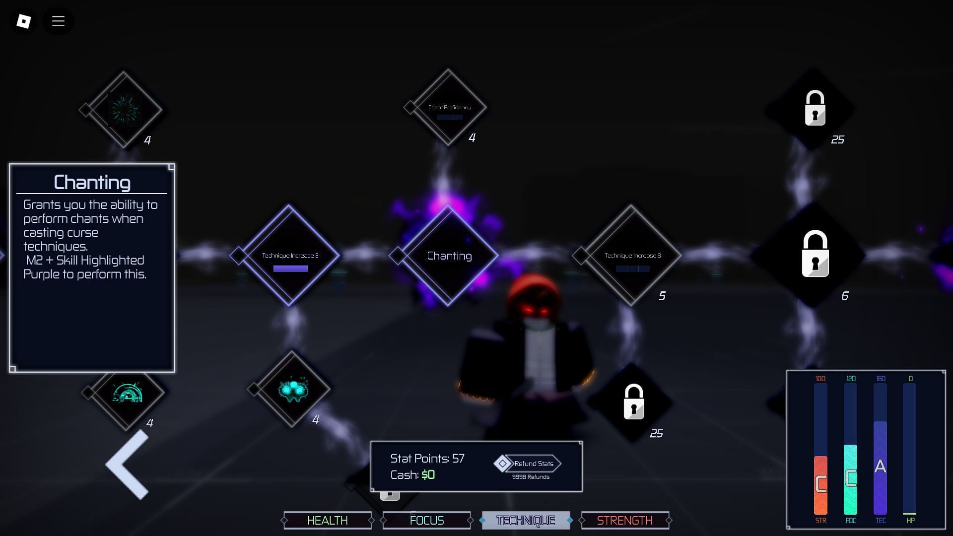 Chant is a mechanic similar to Black Flash, being a power-up that utilizes the Focus gauge to improve the damage and effects of your attacks. It is available in the Technique skill tree as the Chanting node, accessible after unlocking a few upgrades on the central path.