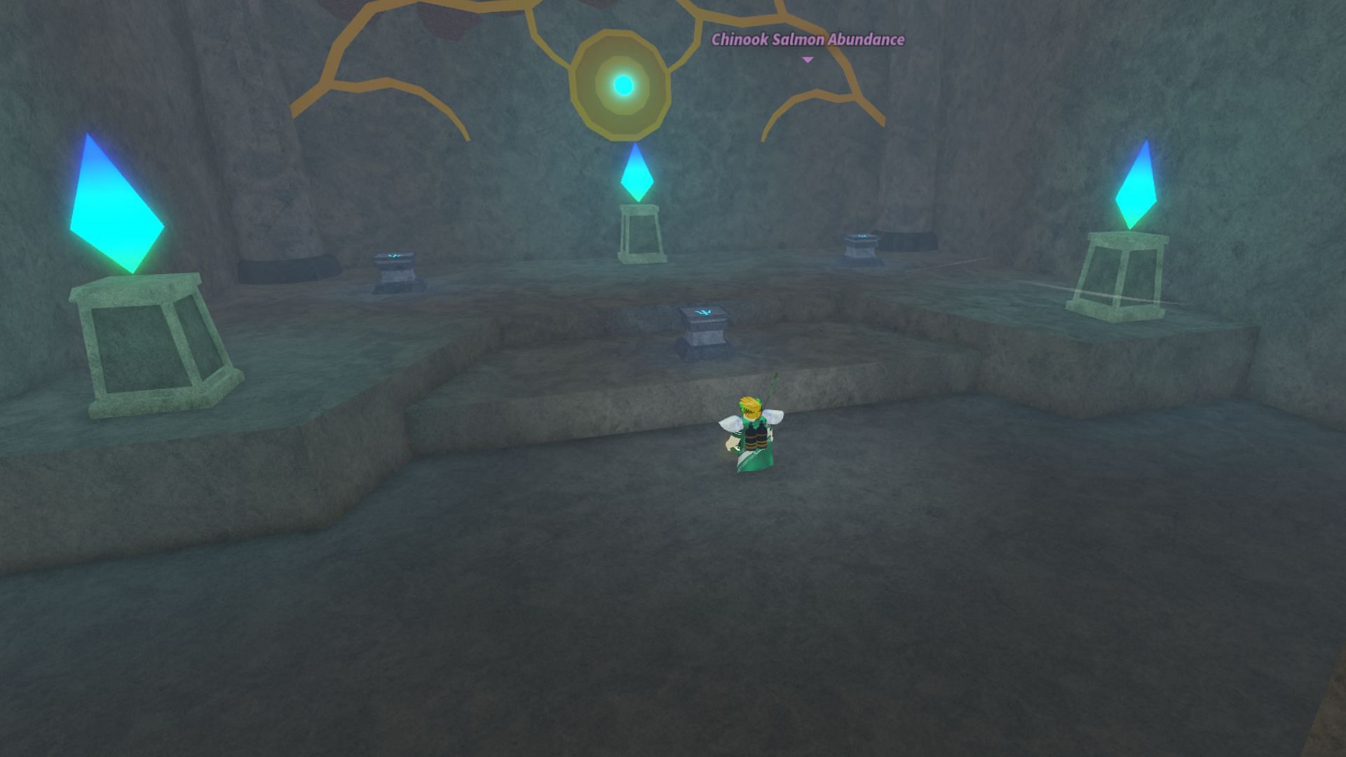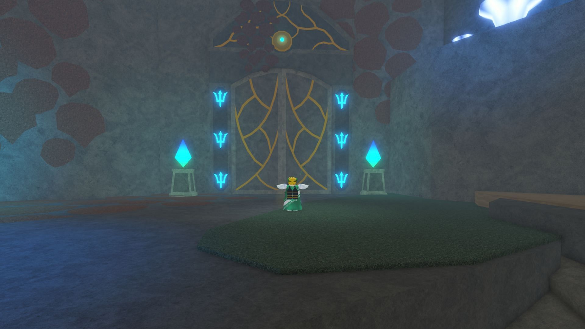 Afterward, head towards the statue's right side and into the passage beyond the arch. After surfacing, you will find the trial door as well as two corridors. Each has several pedestals where you must place specific fishes to complete the puzzle and open the door. The door will open for the whole server, meaning multiple players can work together on this endeavor to get the job done quickly.