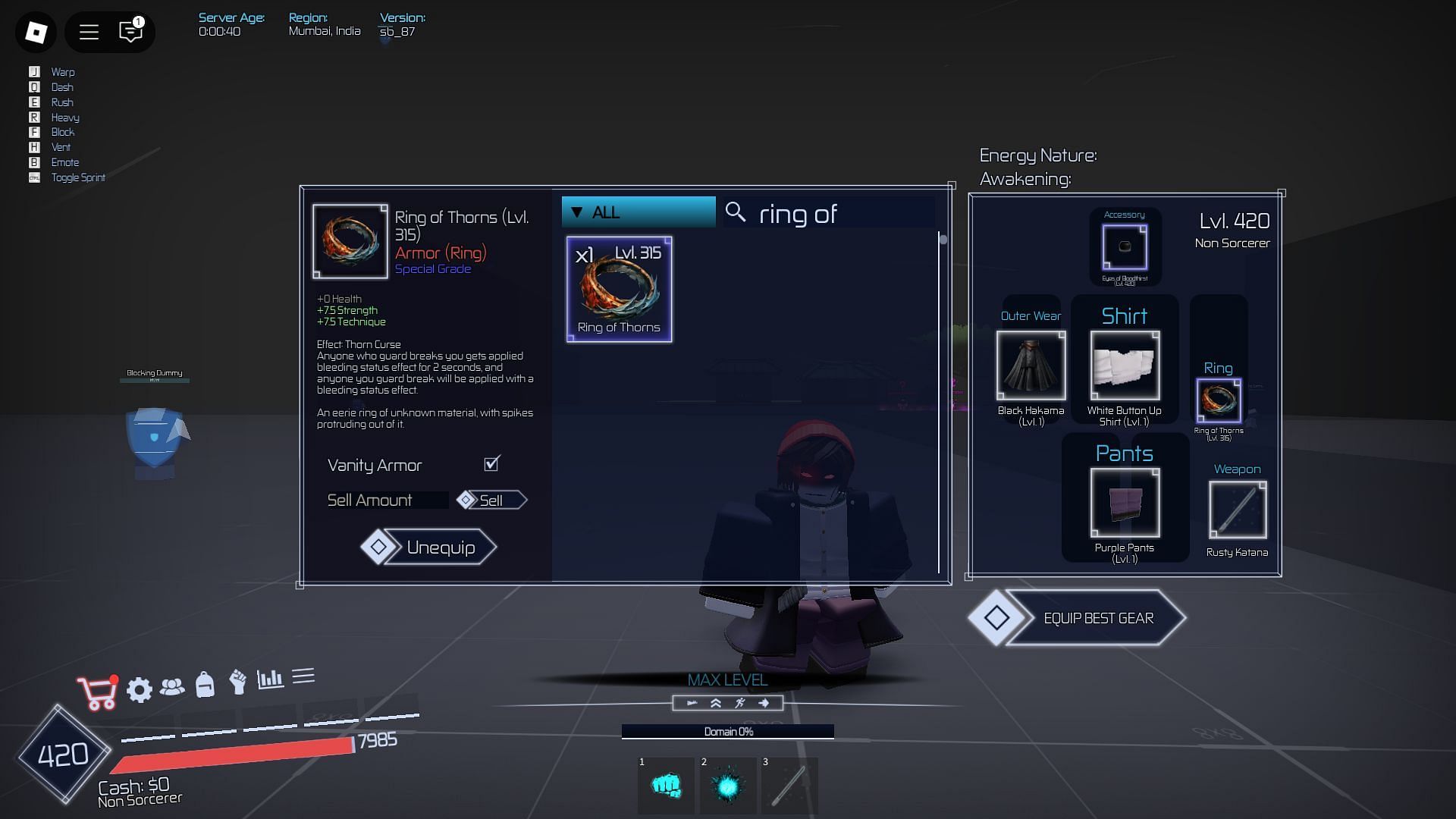 Jujutsu Infinite requires you to equip your best skills and gear pieces to fight foes in a world inspired by Jujutsu Kaisen. For those seeking a good accessory for their bleed-centric build, the Ring of Thorns can be a great gear piece to equip into the Ring slot. This Ring boosts your Strength and Technique, offering a minor boost to your Innate Techniques as a result.