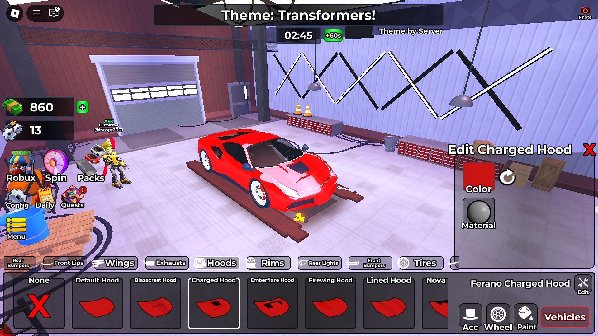 Rate My Car is an interesting Roblox title where you can customize a vehicle and compete with other players on the server. It's exactly like Royale High where you dress up according to the given theme and go to a fashion show to earn ratings. However, there are a few things that work differently in this experience. The most obvious is that it takes place in a garage where you can add or remove multiple accessories.
