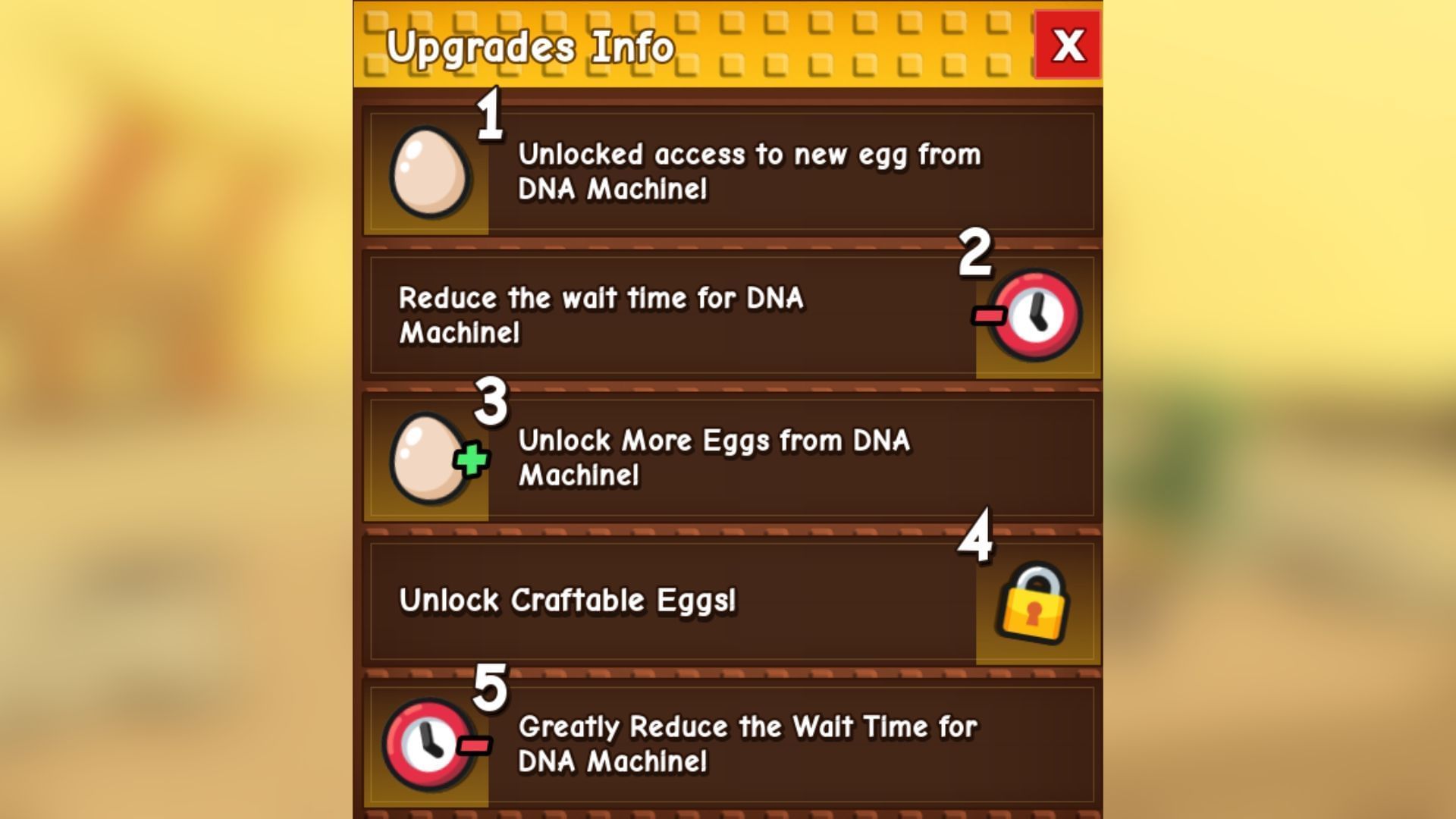- Level 3: Unlock more Eggs from the DNA Machine.