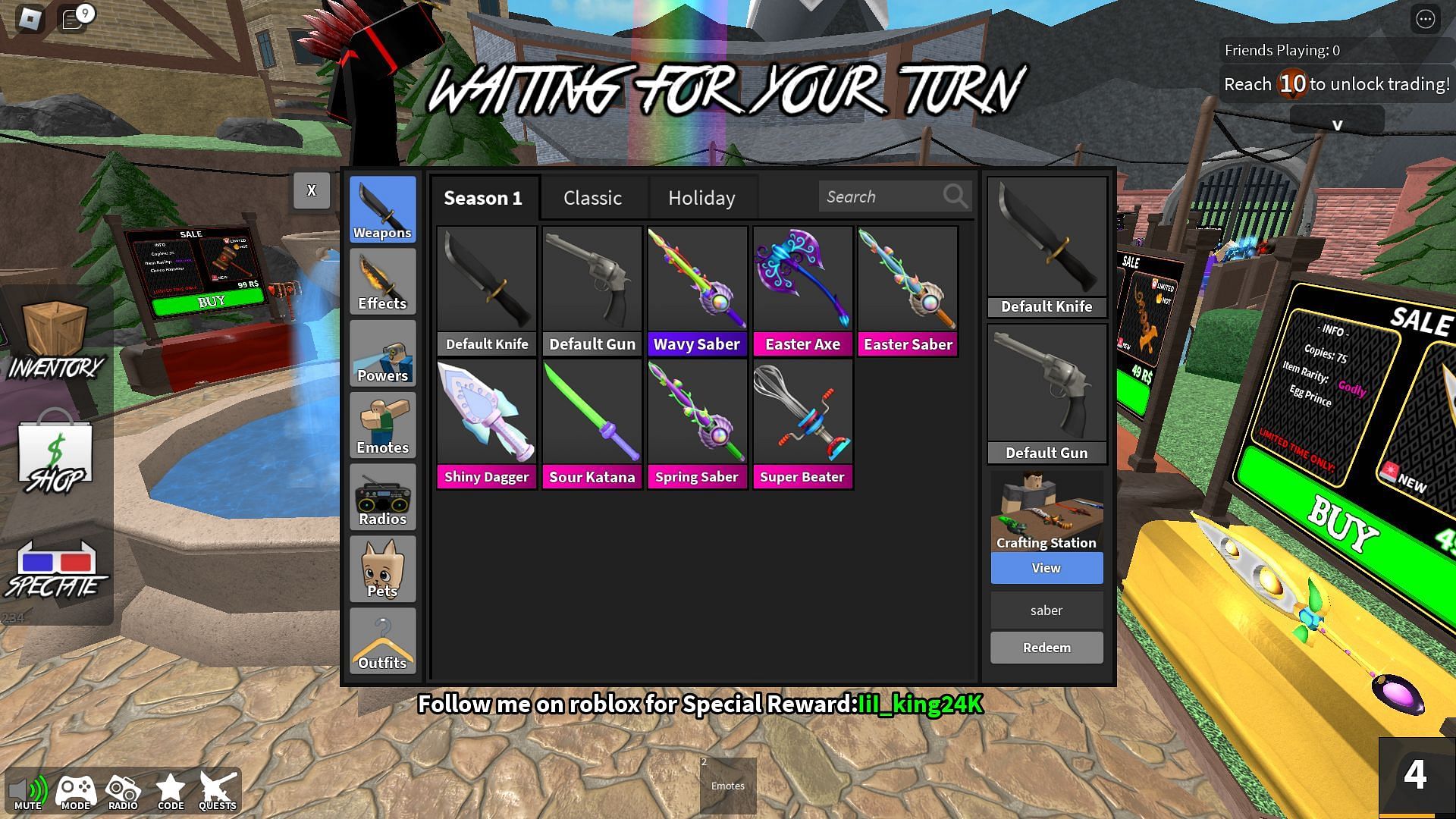 You can use the code SABER to receive the Wavy Saber as a reward in Killer Showdown.