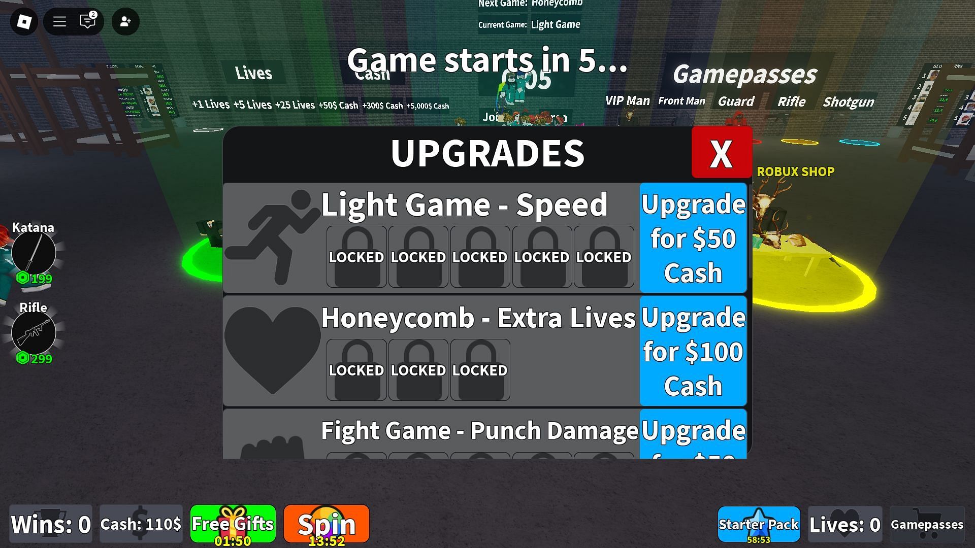 - Robux Shop: The Robux Shop is a premium-only store that sells extra lives, the ability to perform pushes, weapons, Cash, and more. These directly impact the gameplay and tip the odds in your favor, potentially granting you an easy win as long as you stick to the rules.
