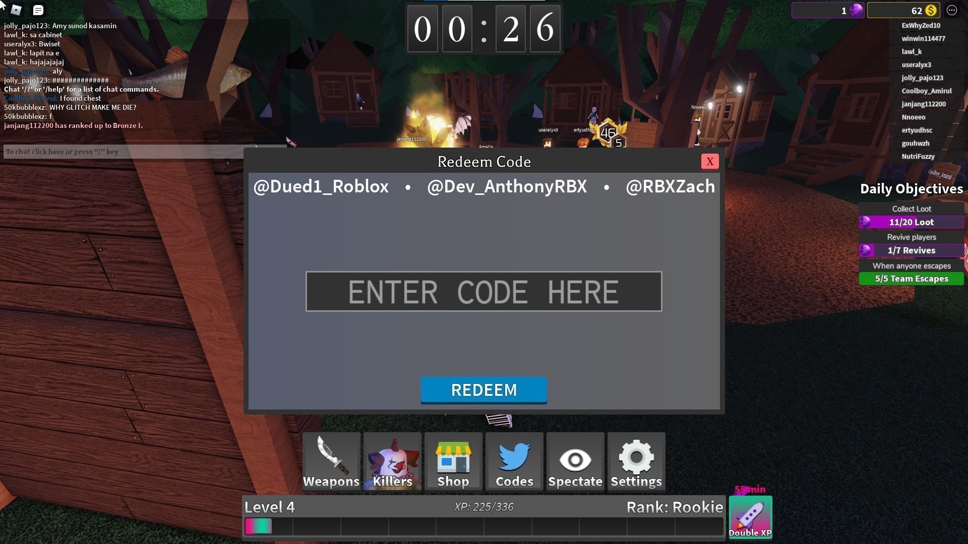 Players who don’t know how to collect the rewards from Survive the Killer codes can do so by following these procedures: