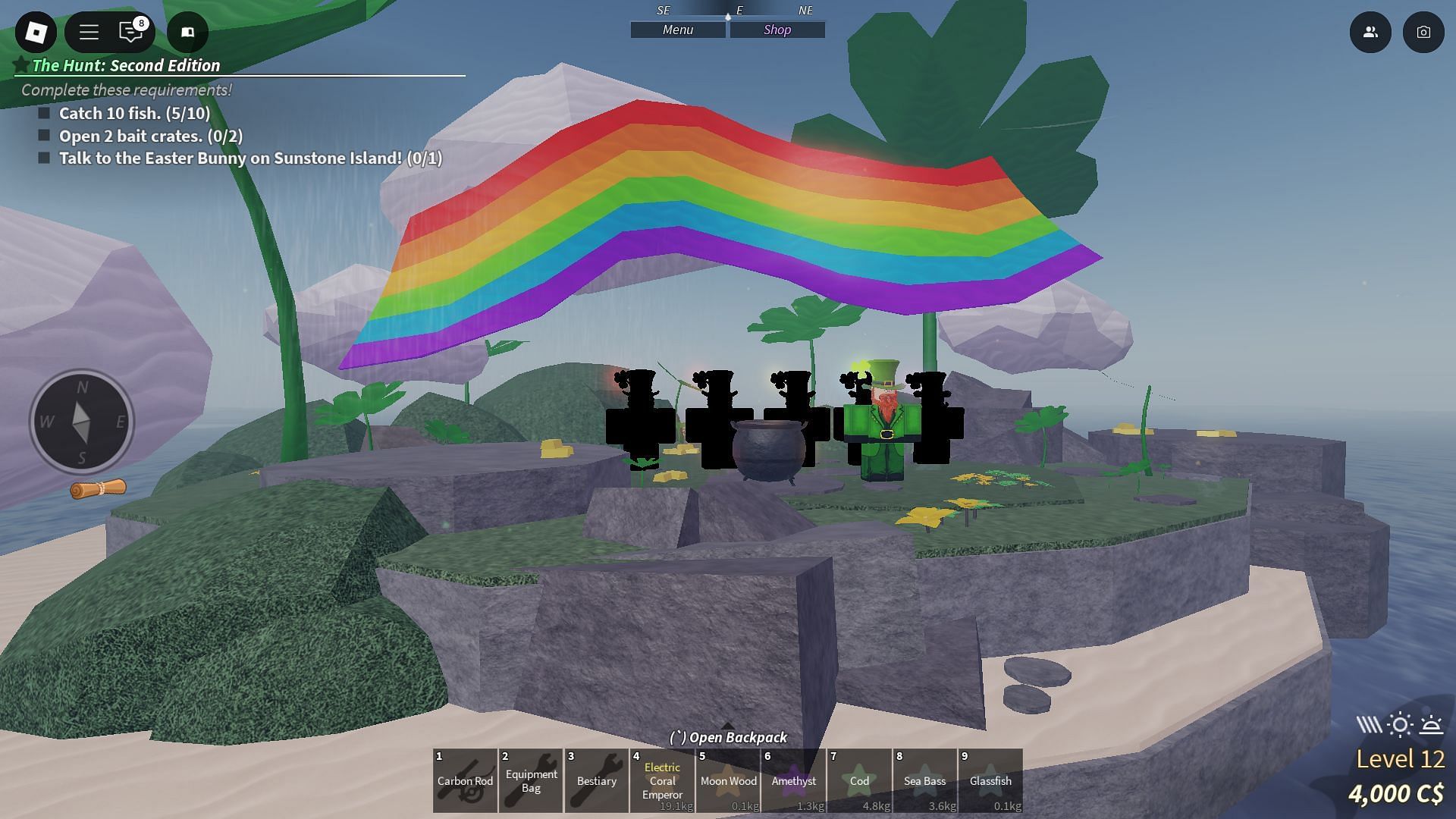 With these elements in your inventory, wait for the Plumrick O’Luck Lucky Event Pool to trigger, hop on a boat, and make a beeline toward the pool. Use the Tempest Totem to summon the Rainy Weather, equip your best rod and the Lucky Bait, and start fishing.