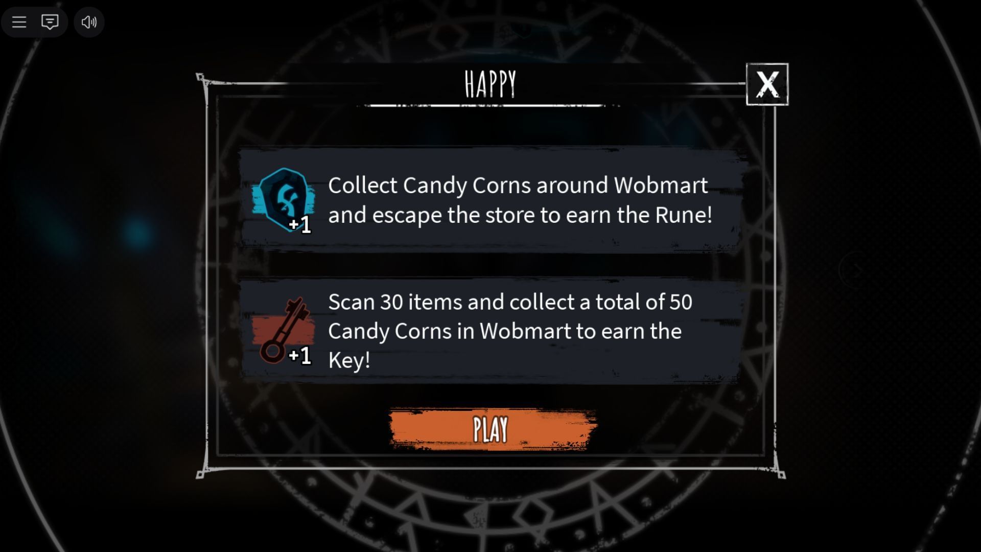 Happy is a survival horror simulation by Panik and has received two quests as a part of Roblox's Halloween Spotlight event. In this game, players must either survive and escape from the killer or become the killer and eliminate all the other players on the server. During this event, players can get a Rune and a Key, which are essential items for progressing in the Halloween Spotlight event.