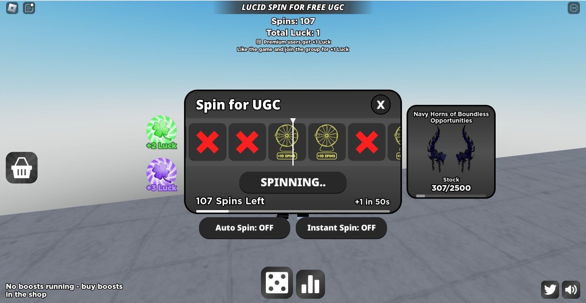 All the codes in Spin 4 Free UGC are highly beneficial and effective in-game. You don't have to wait for Spins; instead, you can use the free Double Luck and Triple Luck boosters to increase your chances of acquiring UGC or Spin-based rewards.