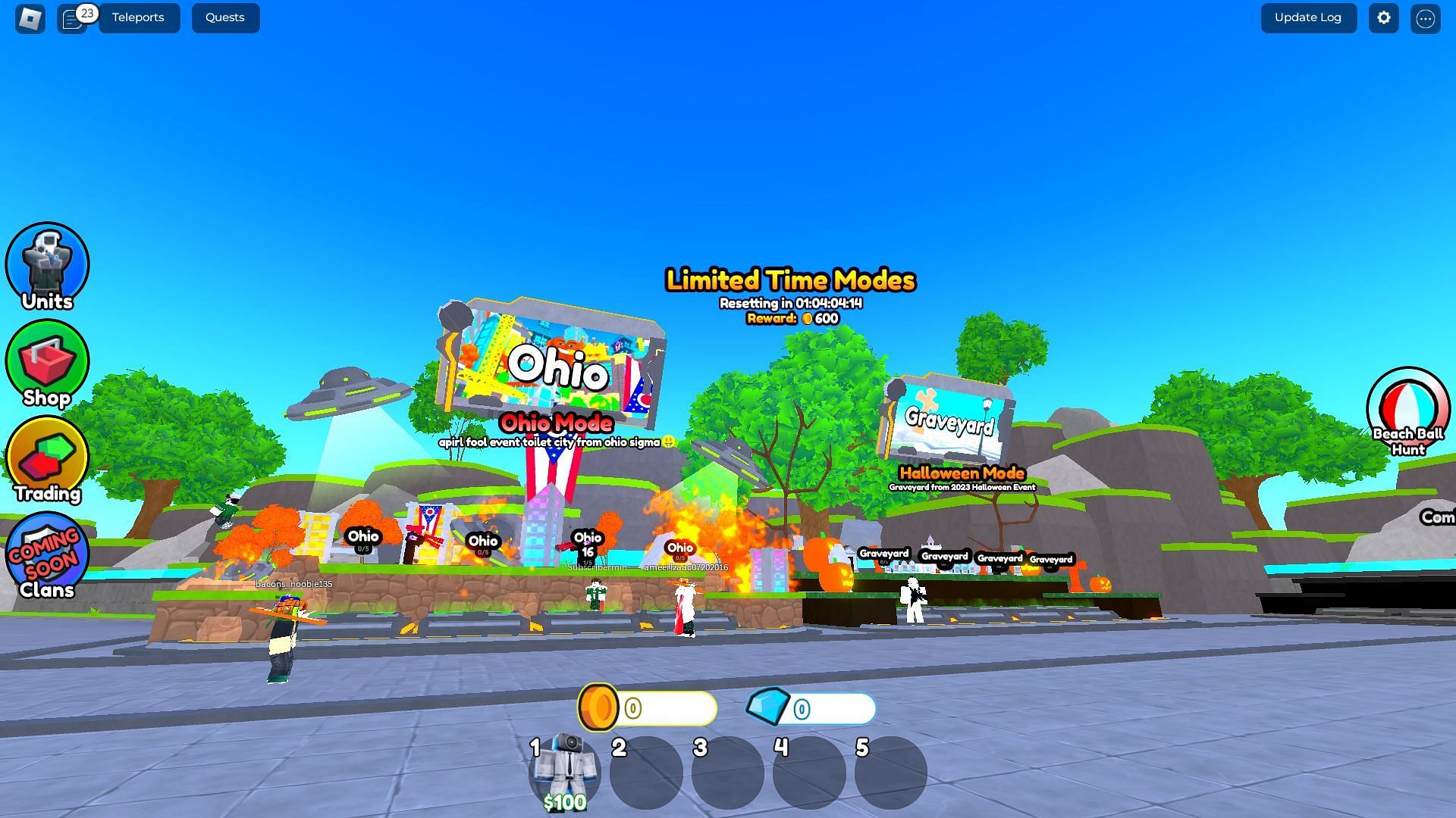 Two Limited-time modes were added to the experience: the Ohio Mode and the Graveyard. The former is a returning event from the April Fools update, where you must battle waves of random enemies with various mode-specific modifiers.
