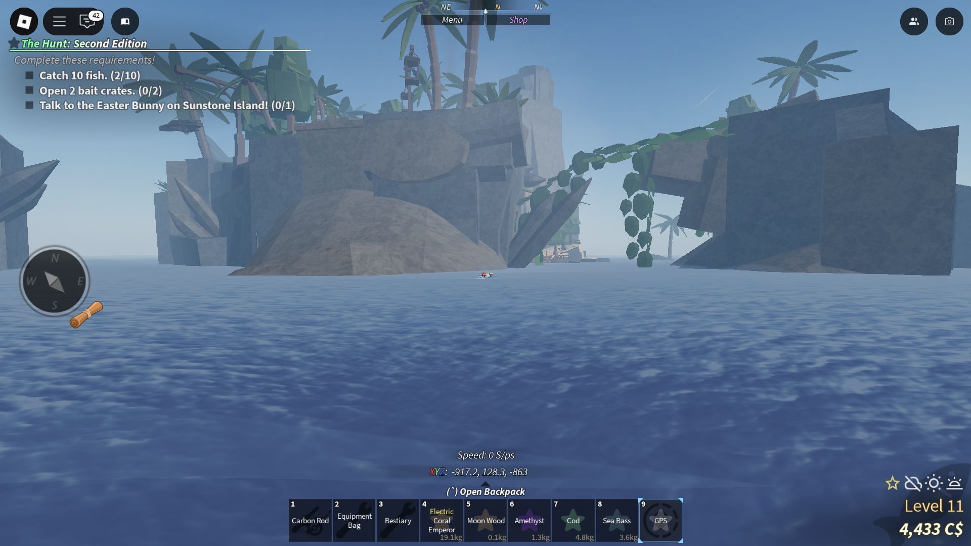 The easiest way to reach Sunstone Island in Fisch is to head northeast from Moosewood, found close to the Statue of Sovereignty. This area can be found at the coordinates (X: -932, Y: 131, Z: -1109).