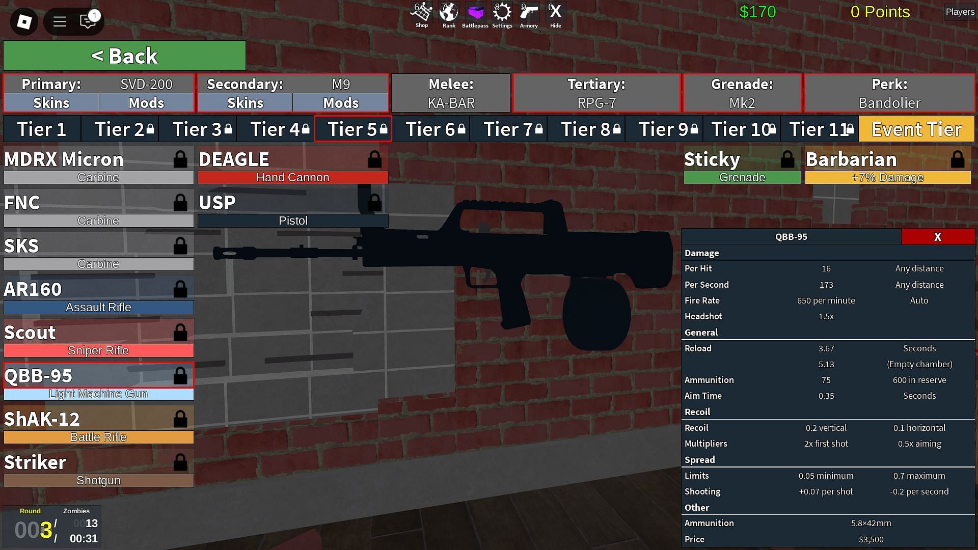 How to unlock Tier 5 weapons in Zombie Uprising?