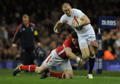England’s Mike Brown is tackled during the Six Nations match against Wales in Cardiff, south Wales on March 16, 2013. Wales won 30-3.