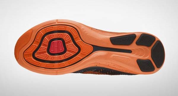 The outsole features BRS 1000 carbon rubber. This environmentally friendly material offers great traction on multiple surfaces. Do not worry about durability. BRS 1000 carbon rubber is a highly durable material. The molded flex groves on the outsole provide supreme levels of flexibility over the whole movement of the foot. The unique pattern on the outsole matches the foot movement during the strides. The heel-to-toe transition is incredibly smooth with the Flyknit Lunar 3