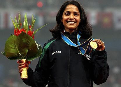 She is the first Indian athlete to win a medal at the World Athletics Championships when she won bronze in long jump in Paris in 2003. She won gold in the IAAF World Athletics final in 2005.