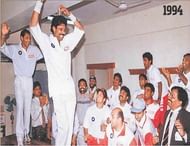 Kapil Dev busting a move on a table, showing that even legends let their hair down off the pitch at times.