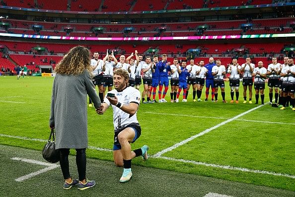 Romania may have not got past the pool stage at the world cup, but for one Romanian player it was a very memorable one indeed. Florin Surugiu decided to pop the question to his girlfriend after the loss to Ireland with his teammates behind him offering support and the few who remained inside Wembley stadium. She said yes, of course.