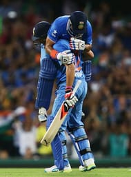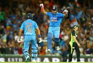 Yuvraj Singh and Suresh Raina celebrating after winning the final Twenty20 international match against Australia at Sydney Cricket Ground today in Sydney, Australia. Both the batsmen showed extreme patience and helped India finish the tour on the positive note where visitors faced whitewash first time in their 140 years cricketing history.