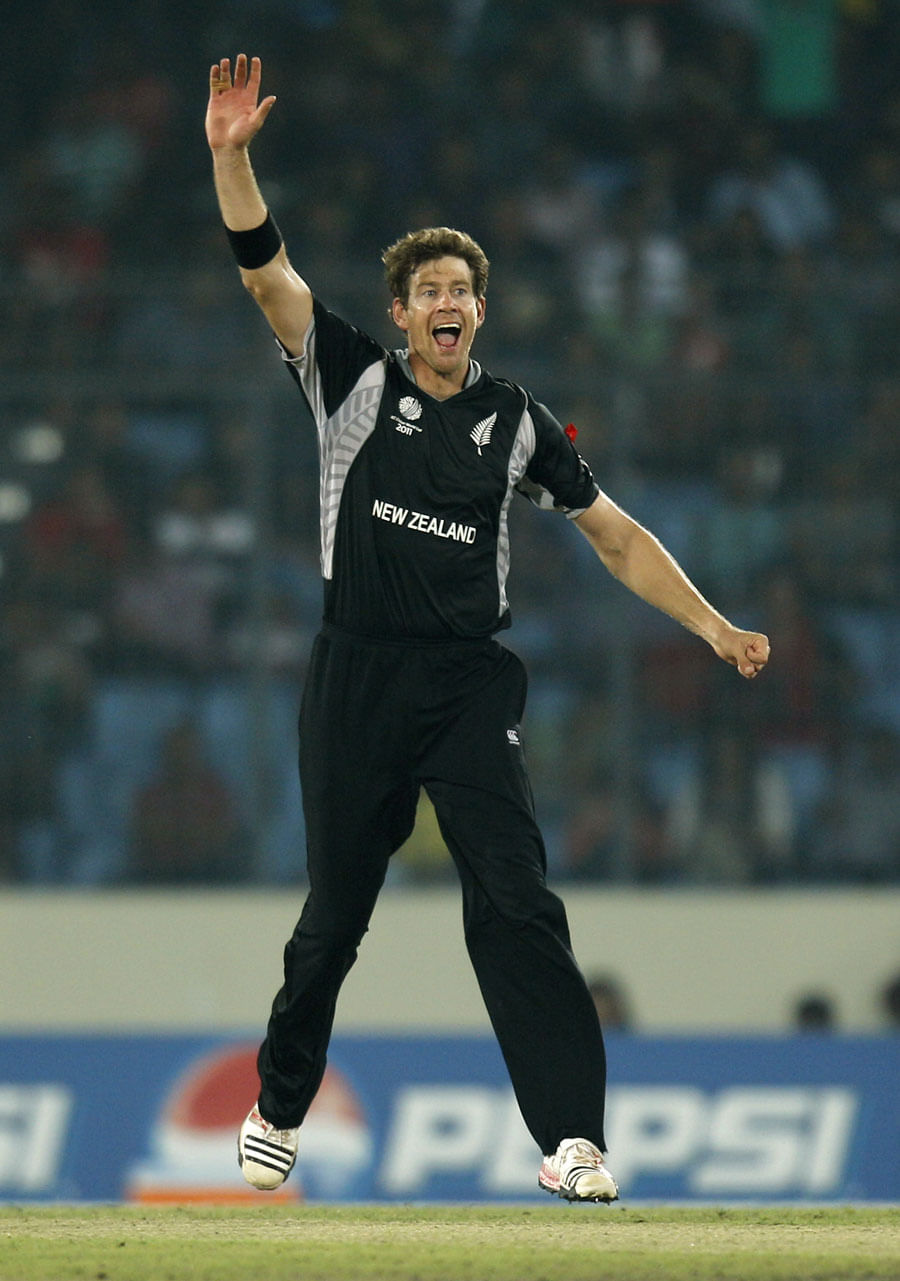 Jacob Oram, yet another ODI and T20 specialist who got a fairly long run in Tests, made his debut against India at Wellington in 2002. In extremely seamer-friendly conditions, he trapped Sachin Tendulkar in front of the wicket for just 8 runs; he went on to pick 4 more wickets in the match to help Shane Bond and Daryl Tuffey demolish India en route to a 10 wicket victory.
