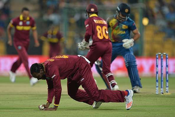 Chris Gayle injured himself while taking a catch in the ninth over to get rid of Milinda Siriwardana. He was instantly taken off the field and replaced by Jason Holder.