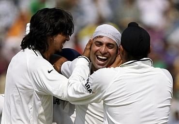 But Ishant stood defiant and the Aussies were being stonewalled. He pushed forward with the straightest of bats and defended everything with soft hands, even driving a couple through the covers. Laxman on the other end played delightful strokes, but wincing every time he had to move his back.