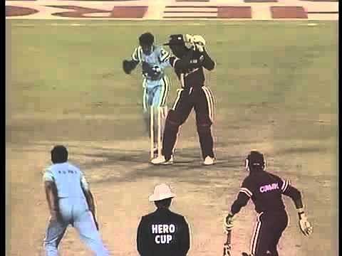 A five-nation one-day final. The first floodlight final in India. The stadium with the highest capacity (100,000) in the world. Diwali eve. India bats first and gets a low score. And Brian Lara and Co. are blazing away with the chase. Sachin gets Lara, but West Indies are unstoppable. Azhar then introduces into the attack one spinner who is looking to establish himself as an integral member of the team. This was just the stage Anil Kumble was waiting for.