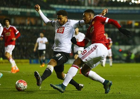 Manchester United survived an initial scare to see off Championship side Derby County at the iPro to progress to the fifth round of this seasonâs Emirates FA Cup and ease some of the pressure on manager Louis van Gaal. Wayne Rooneyâs sublime finish after 16 minutes put the visitors ahead, before George Thorne equalised for the Rams by latching on a beautiful chip pass from Chris Martin. They nearly went ahead via. Martin at the end of the first half, only to be denied by a magnificent Chris Smalling tackle just as he was about to pull the trigger.The second half was all United though, with Anthony Martial running the show on the left wing and Jesse Lingard creating a plethora of chances on the right. Daley BlindâÃÃÃÃÃÂs side-footed finish past Scott Carson from a driven Lingard ball and a Juan Mataâs one-touch finish after some good work by Martial wrapped up the tie for the Red Devils.We look at the five talking points that shaped up an entertaining game at the iPro stadium:
