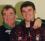 Clough gave Roy Keane a start to his professional career by signing him for Nottingham Forest in 1990, and apparently had no idea that the Irishman was of an equally volatile temper. After a costly mispass against Crystal Palace, Clough punched Keane in the face in anger, knocking him to the floor. "I only ever hit Roy the once", admitted Clough once, "He got up so I couldn't have hit him very hard".