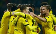 The Dortmund team celebrate after a goalBorussia Dortmund took a giant step into the quarter-finals of the Europa League as they beat Tottenham Hotspur with three unanswered goals in the first leg of the round-of-16 clash at the Signal Iduna Park.Pierre-Emerick Aubameyang broke the deadlock for the hosts in the first half before Marco Reus followed it up with a brace in the second to all but settle the tie. The Lilywhites huffed and puffed in their quest for taking something away to North London next week for the second leg, but couldn’t beat a resilient BVB side as their European ambitions took a massive bruising.Here are the major talking points from Westfalenstadion: