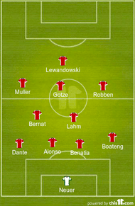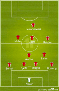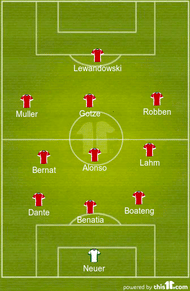 The back three is mostly filled with assorted defenders with the likes of Boateng, Dante, Badstuber and Benatia. The three in front of them is usually comprised of Alonso, Lahm and Bernat, with Bernat occasionally being sacrificed for Rafinha.