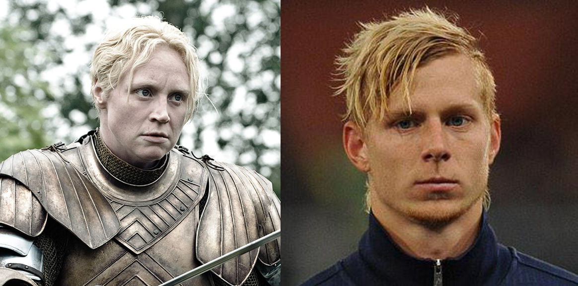 Former Stoke City player, Brek Shea’s gender is different from that of Brienne of Tarth, but they still look similar and it’s probably because of the fringe they both have.