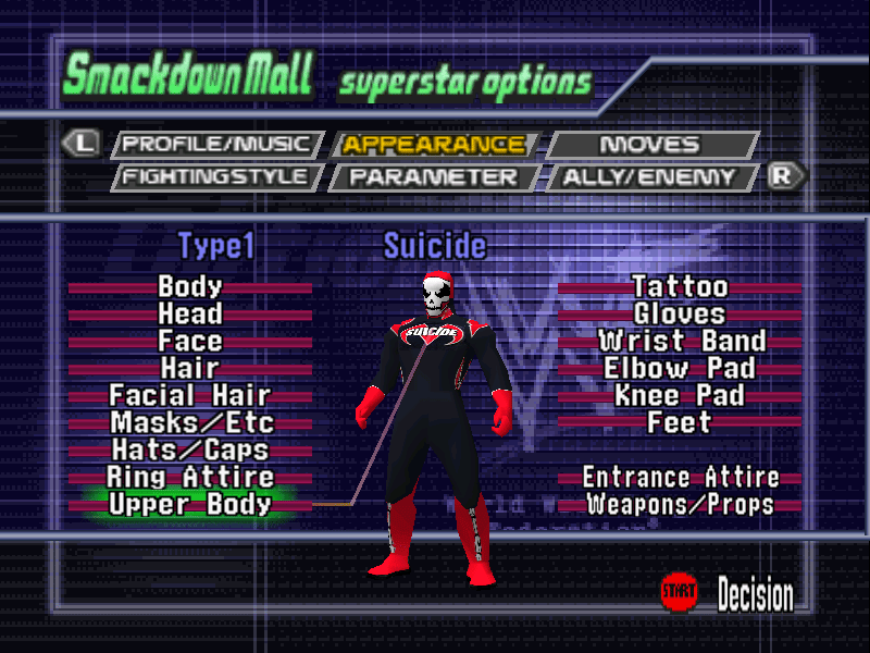 WWF No Mercy introduced a comprehensive mode called Create-a-Wrestler mode where players can modify, edit or create their own characters. Only a handful of wrestling games allowed gamers to thoroughly customize and edit your superstars. Using this mode, a multitude of options were available such as adding more moves, customizable body characteristics and unique attires. Also a newly added feature to No Mercy was the ability to create female wrestlers, which was missing in it’s predecessor- WWF Wrestlemania 2000. Though No Mercy didn’t allow players to modify a wrestler’s facial features and the body types were mostly similar, it made up for this with a decent amount of freedom along with an addition of a new attritbute system that ascertains how well your wrestler will perform in the ring.