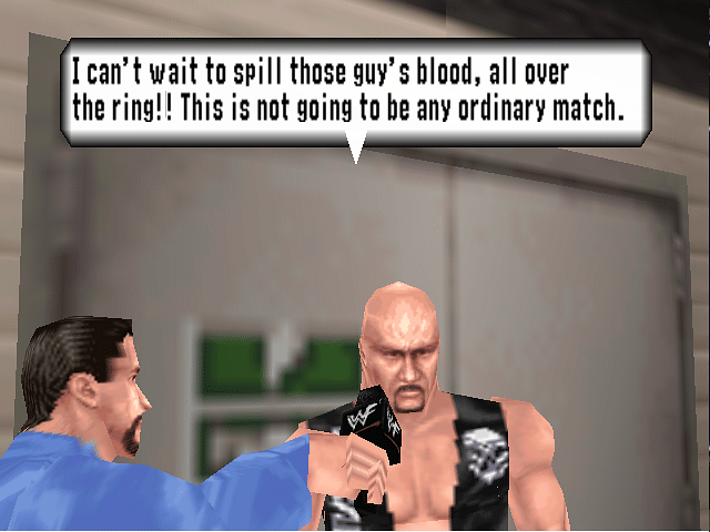 The backstage environments were re-introduced when the WWE series took over the reigns from the WWF series, and even in WWE 2k15 the backstage environment can be used to take the fight beyond the ring and to settle rivalries. As cool as it is with the backstage environments, WWF No Mercy took it further with it’s capability to make behind-the-scenes more entertaining and varied. In No Mercy apart from the backstage and the ring obviously, you can change environments on the go before the match itself by leaving the ring and going through the curtain and taking the fight to the parking lot, the locker room and even a lounge. The objects in the environments are also usable; you can grab the pool stick in the lounge to beat up your opponent or shove him into the pool table itself. Also for the first time in the series, apart from the ability to fight backstage, moves can even be performed on the commentator’s table too.