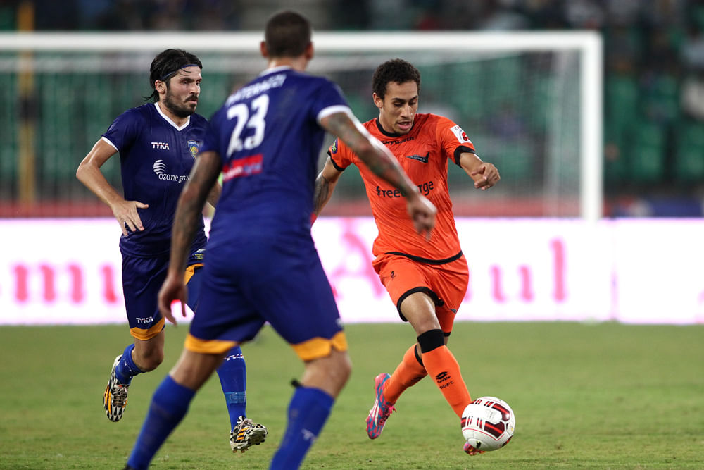 An engaging contest at the Marina Arena in the early kick-off saw the points being shared between Chennaiyin FC and Delhi Dynamos. It was a game of two halves as the home side went 2-0 up in the first half before Delhi fought back with two of their own in the second half to take away at least a point and keep their hopes of making it to the semi-finals alive, though only just. We got to see plenty of good attacking play in this match from both sides and the following thoughts emerged from this encounter: