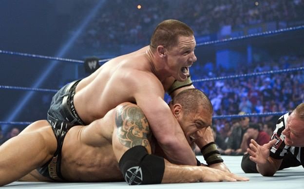 This match took place in 2008. This was not a Championship match but a match in which two big icons of the industry locked horns. During the match, Batista used the Figure 4 leg lock, the signature move of Ric Flair, on Cena and Cena broke the hold. Cena delivered an AA over the top rope and also a five knuckle shuffle. Cena locked in the STFU on Batista for nearly 60 seconds and ‘The Animal’ somehow managed to break the hold. During the closing moments of the match, Batista delivered a power bomb on a high flying Cena outta nowhere and followed it up with a vicious ‘Batista Bomb’ and secured the win. Have a look at the video-