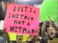 And one of them went like this, ‘Put a S in front of Hitman and you’ll know what I think about Bret Hart’ it was a classic moment and some fan decided to make a sign out of this promo as well.