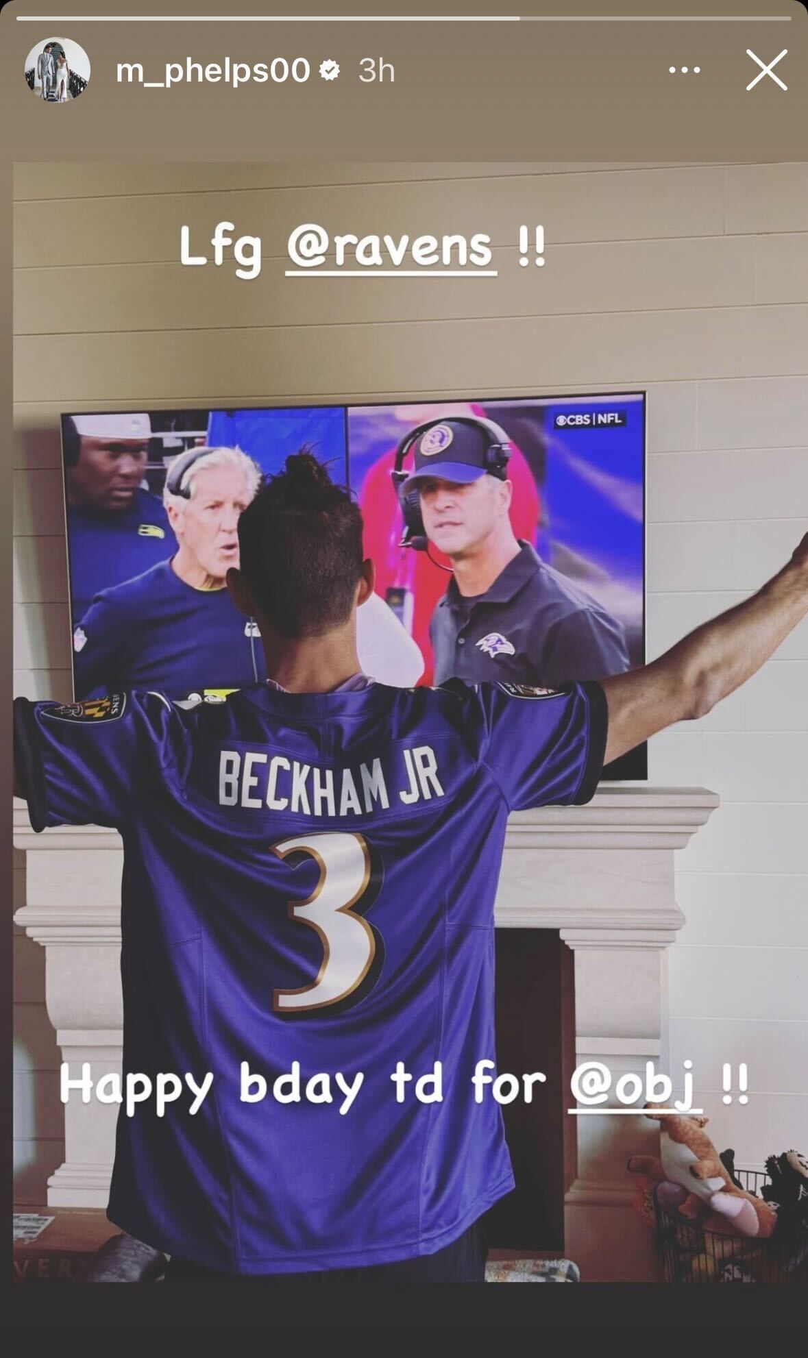 Most recently, Phelps wished Baltimore Ravens receiver Odell Beckham Jr a happy birthday and celebrated the latter's first touchdown with the team in a picture he shared with his fans.