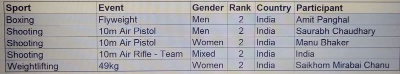 Amit Panghal, Saikhom Mirabhai Chanu, Saurabh Chaudhary, Manu Bhaker and Indian 10m Air Rifle team (mixed) expected to win silver medals at Tokyo Olympics
