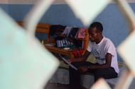 Mohamed Hassan Mohamed, one of Somalia’s Olympic hopefuls, reads a training manual on his bed at a training camp in Mogadishu. Facilities are a far cry from the first class treatment that characterizes life for star competitors from other nations. Years of war left training facilities in ruins.