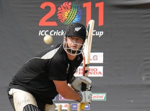 New Zealand batsman Jesse Ryder plays a shot during a training session in Colombo on March 29, 2011. Ryder has emerged from an induced coma but faces “a big battle” as he recovers from a vicious assault, his manager said.