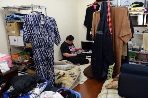 Sumo wrestler Genkaiho relaxes in his private space after a training session at a sumo stable in Tokyo on February 14, 2013. Japan’s declining birthrate and the growing popularity of other better-paid sports in Japan such as baseball have made it increasingly difficult to recruit wrestlers.