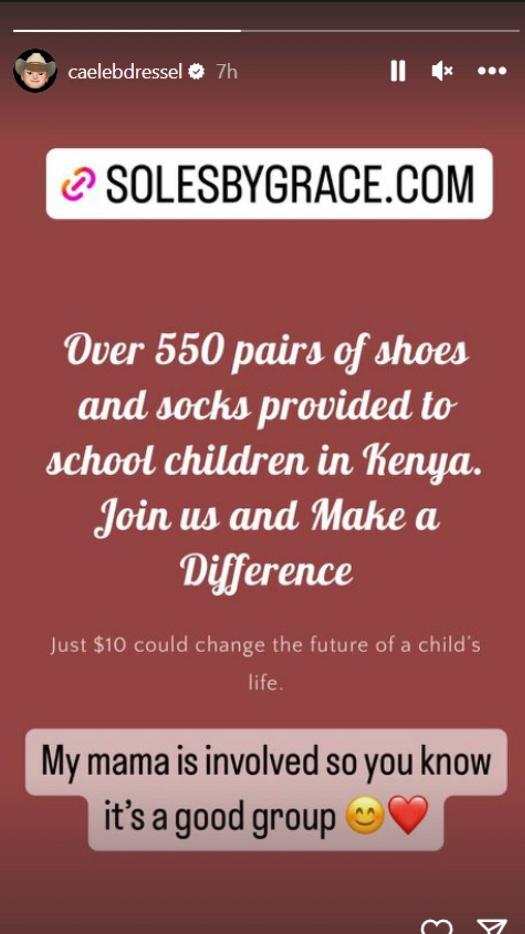 On his Instagram story, Dressel shared a link to a noble organization named Soles By Grace that is working to provide durable footwear to needy children in Kenya.