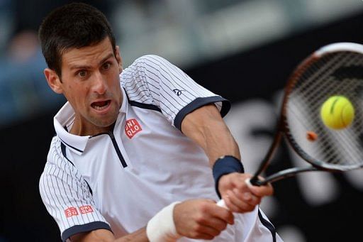 Serbia’s Novak Djokovic returns the ball to Ukrainian Alexandr Dolgopolov during their Rome Masters tennis match on May 16, 2013. Djokovic won 6-1, 6-4 to reach the quarter-finals.