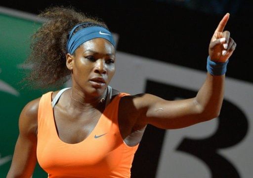 US Serena Williams celebrates her victory over British player Laura Robson at the end of their Rome WTA tennis open tournament at the Foro Italico in Rome, on May 14, 2013.