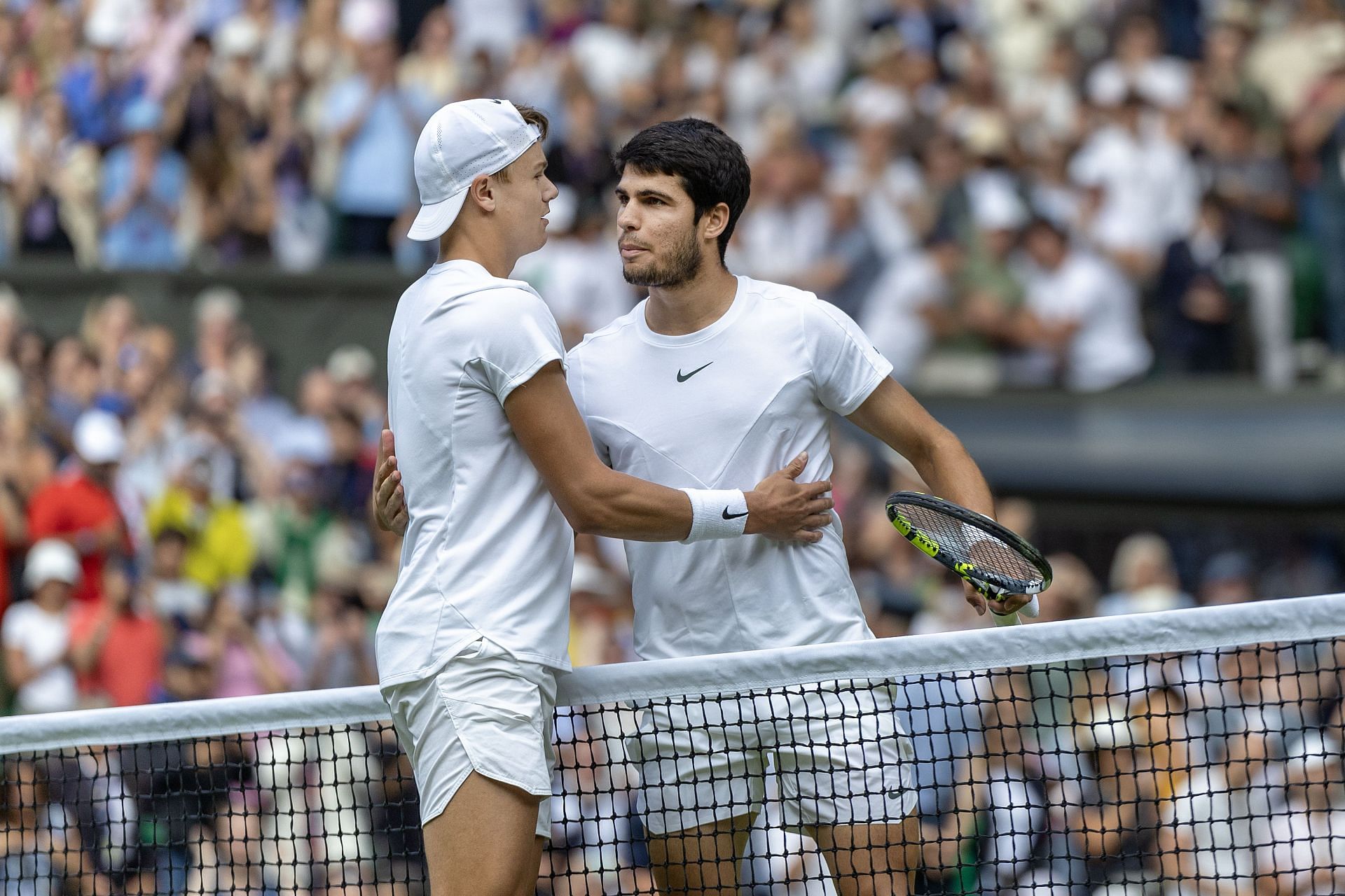 Alcaraz continued his good run of form with a successful title defence at Wimbledon, beating Novak Djokovic in a re-match of last year's final. The two crossed paths once again a couple of weeks later for the gold medal at the Paris Olympics.
