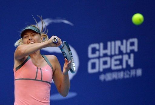Maria Sharapova of Russia returns a shot before winning her quarterfinal women’s singles match against Angelique Kerber of Germany at the China Open tennis tournament in the National Tennis Center of Beijing on October 5. Sharapova went on to win 6-0, 3-0 after Kerber retired with an injury.