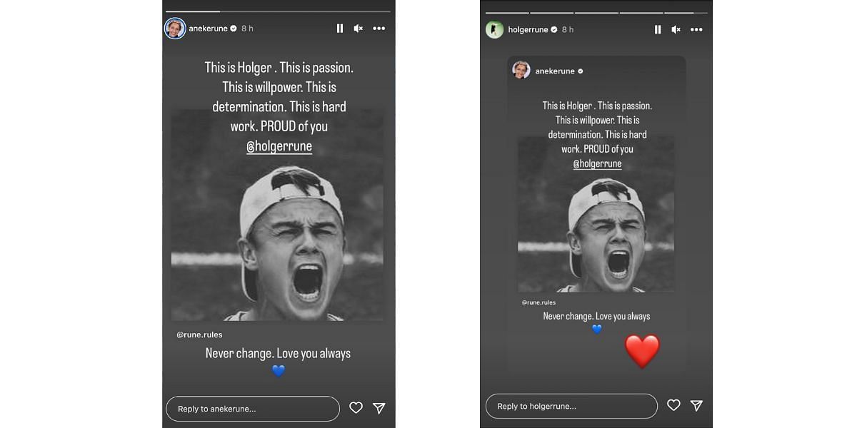 Holger Rune's mother Aneke recently reshared a fan's post on social media, which depicted Rune passionately yelling during a match. She described the photo as a testament to the Dane's passion, willpower, determination and hard work. She also declared her unconditional love and pride for her son and encouraged him to always remain true to himself.