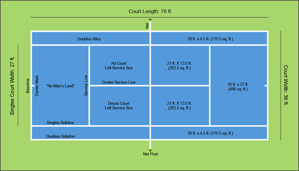 4. No man’s land: This is the area where a player is most vulnerable. It is a 486 sq feet land (18 x 27) between the service area and baseline.