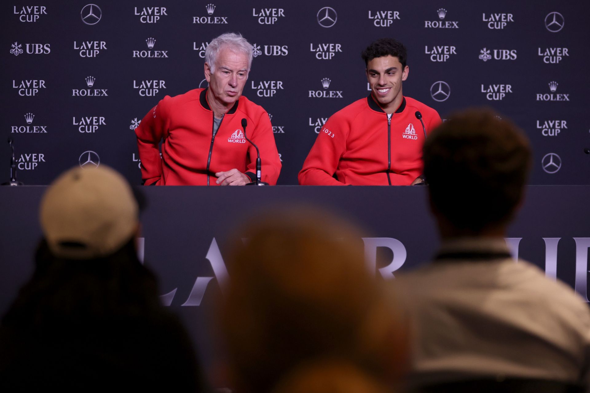 "I always feel that desire, in a way, but then I go look in a mirror and I start with looking at the color of my hair, and I'm, like, How about doubles?" John McEnroe said with a smile at his press conference at the Laver Cup.