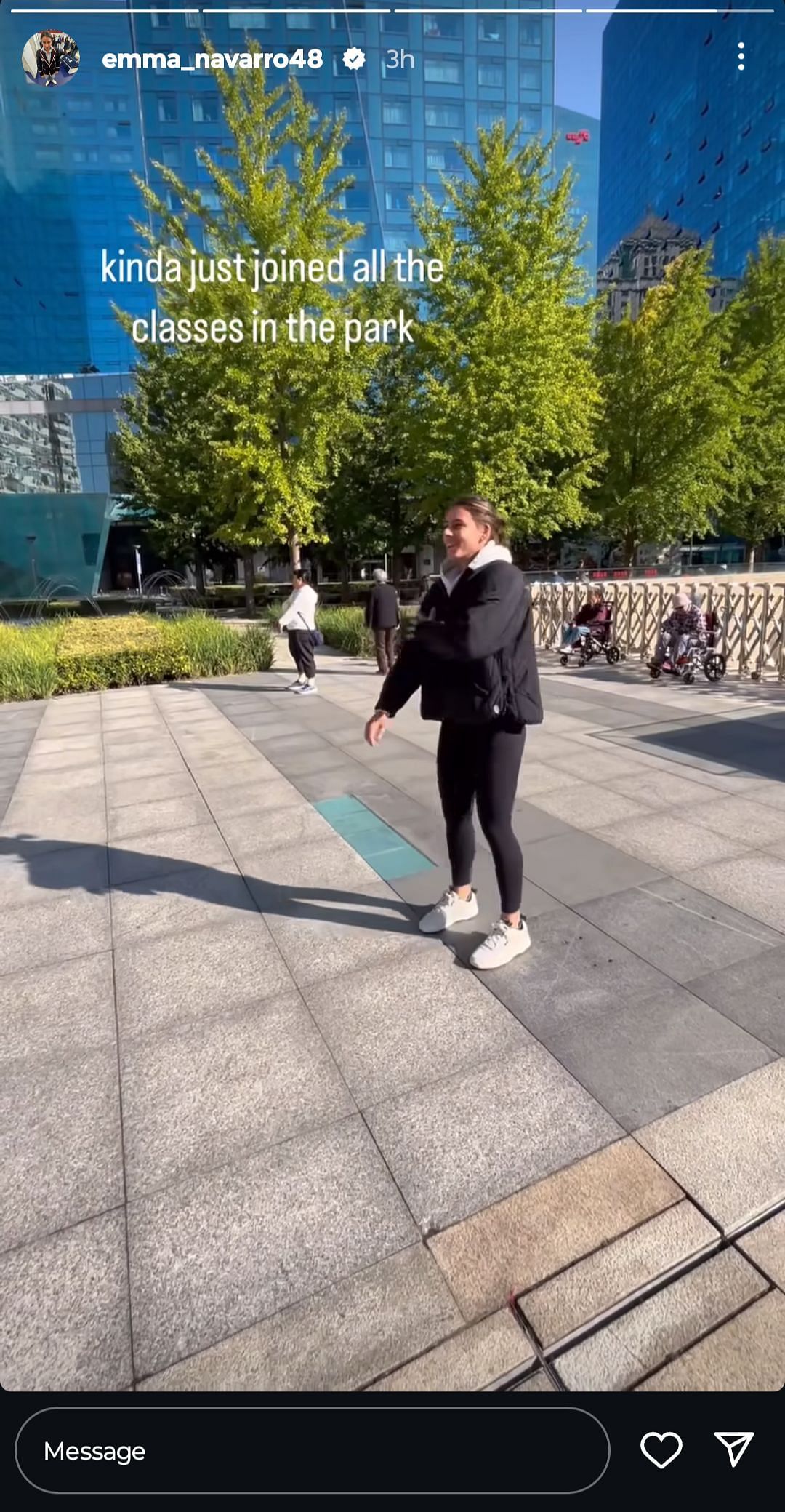 "Kinda just joined all the classes in the park," Navarro wrote.