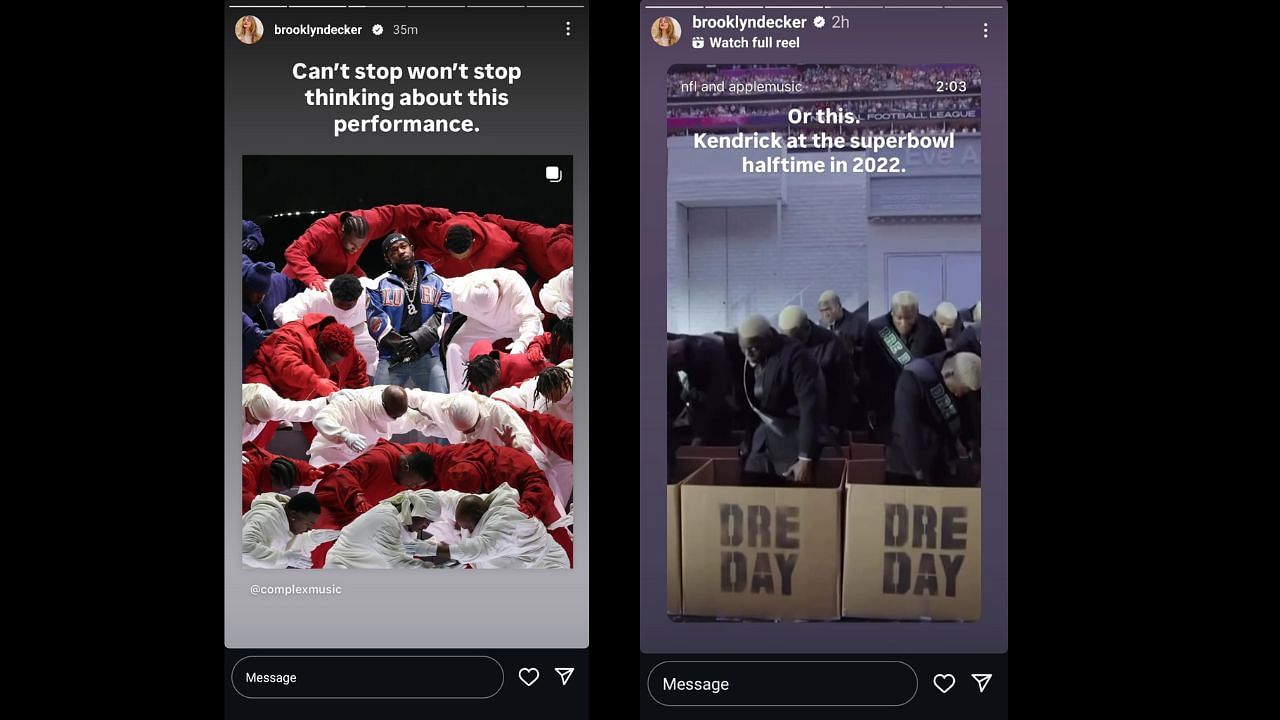 Decker, who is quite active on Instagram, shared her thoughts on her Stories, making it clear that Lamar’s performance left a lasting impact on her. She wrote in the caption: